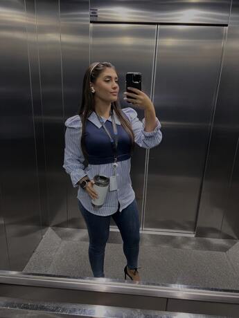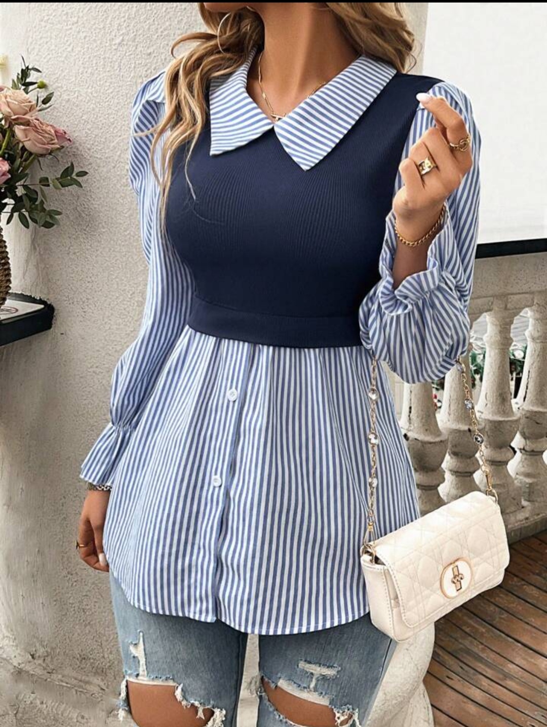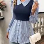 Calvaya Ladies” Fashionable Elegant Blue And White Striped Top Fall Cloth For Women
