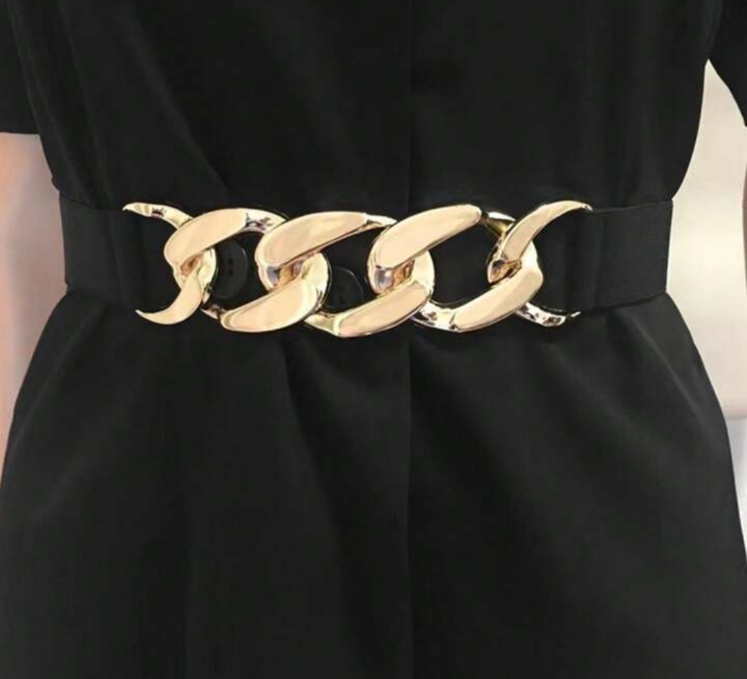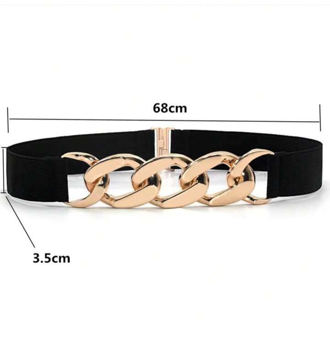 Street 1pc Women’s Simple Metal Chain Buckle Elastic Waist Belt For Dresses, Trousers, Casual Wear Halloween Summer, School Fall, Autumn, Halloween