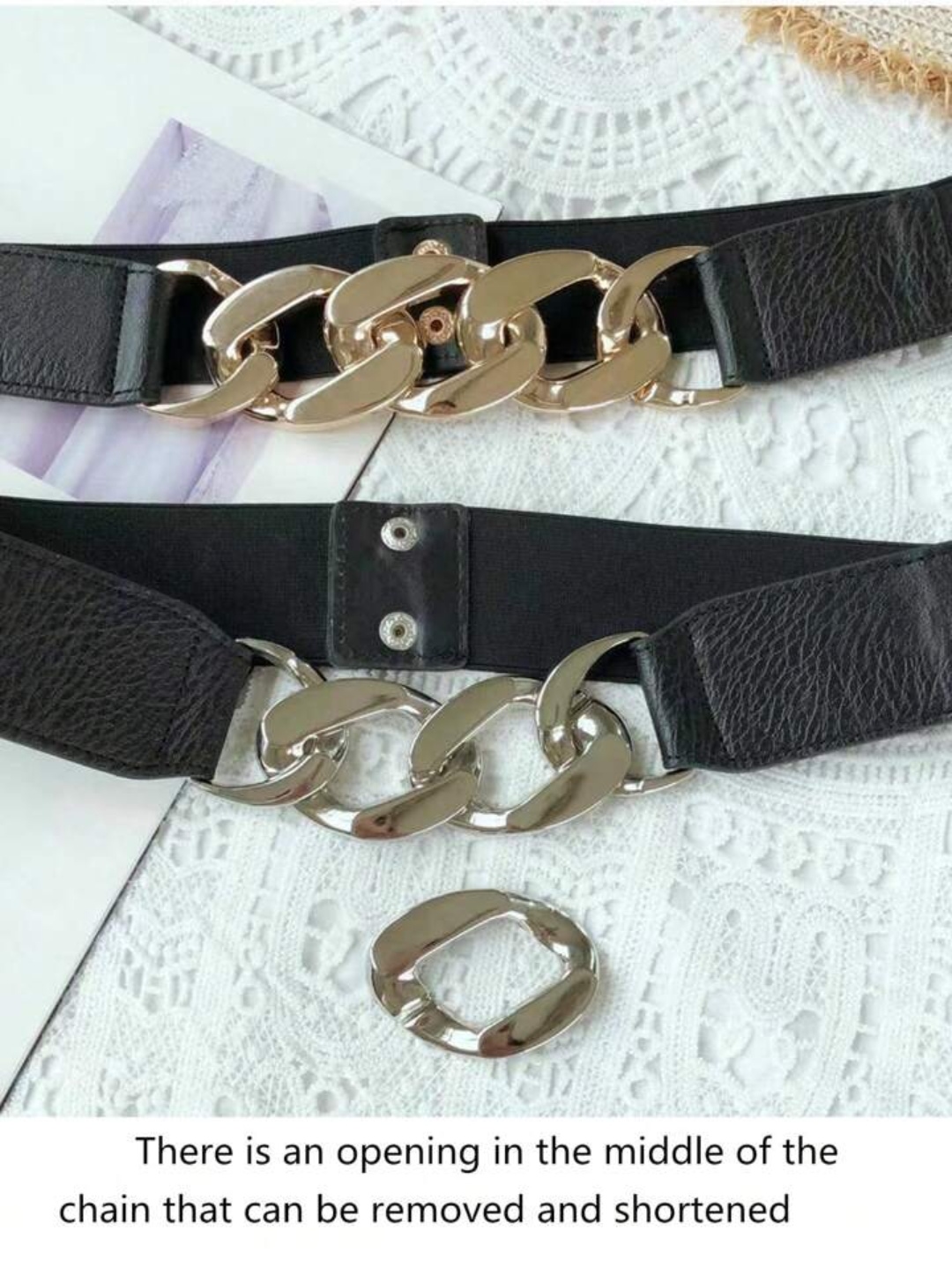 Be the first to review “Street 1pc Women’s Simple Metal Chain Buckle Elastic Waist Belt For Dresses, Trousers, Casual Wear Halloween Summer, School Fall, Autumn, Halloween” Cancel reply